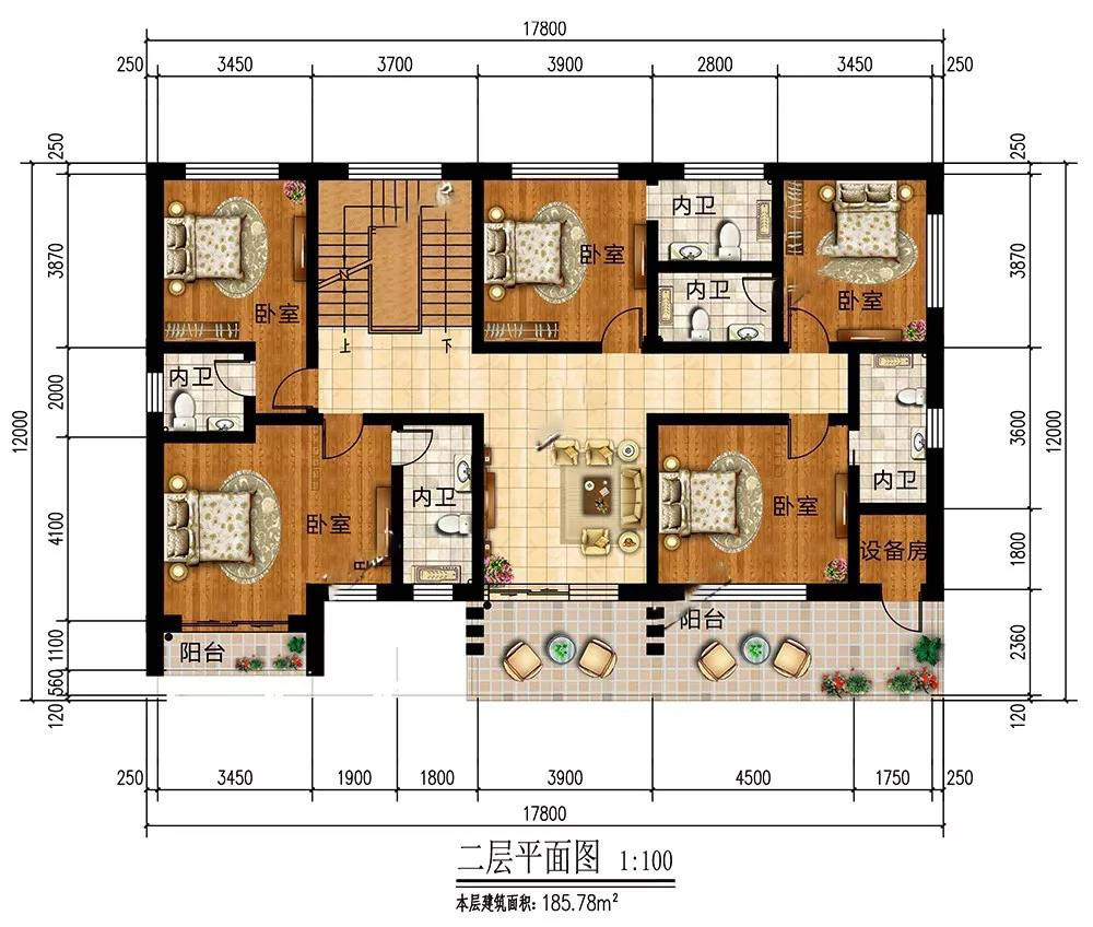 二层:5间卧室,都设有卫生间,布局合理实用,保护隐私;休闲区温馨,休闲活动空间;阳台宽敞,加强采光通风,观景视野佳。