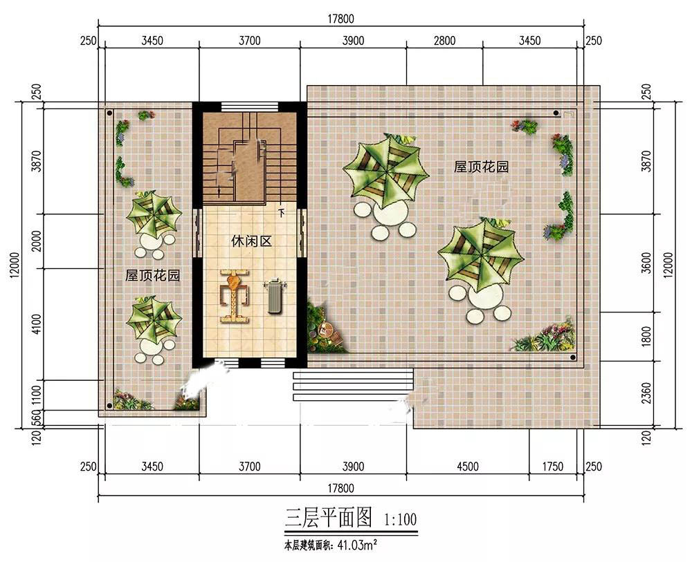 三层:做为屋顶花园,清新安静,可种植花草、可露天烧烤、亲友聚餐等,提升居家情调。