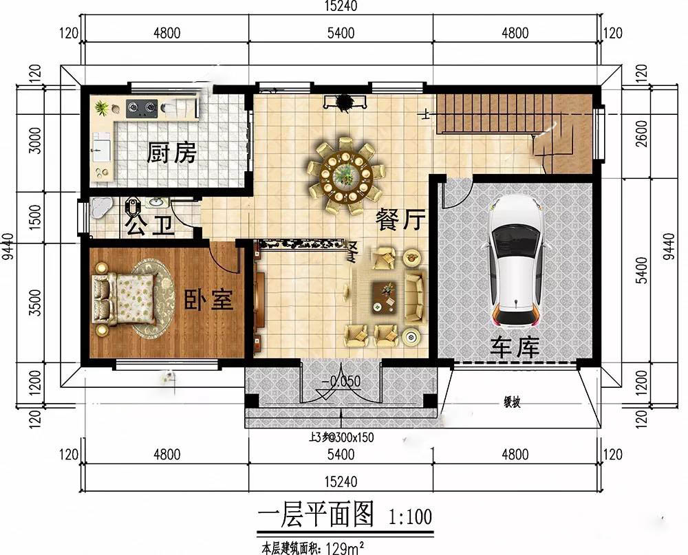 一层:别墅设车库,不停车时也可堆放生活杂物;入户客厅,感受热闹的家庭氛围,过节家人团圆,招待亲友,整体布局温馨紧凑。