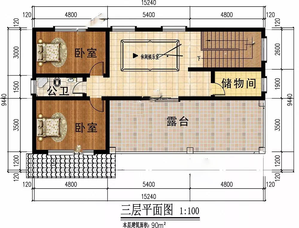 三层:2间卧室,可做客房;娱乐室供家人宾客休闲娱乐,非常符合现代的生活方式;露台面积宽敞,采光通风佳,既满足了晾晒,也可打造空中花园,陶冶情操。