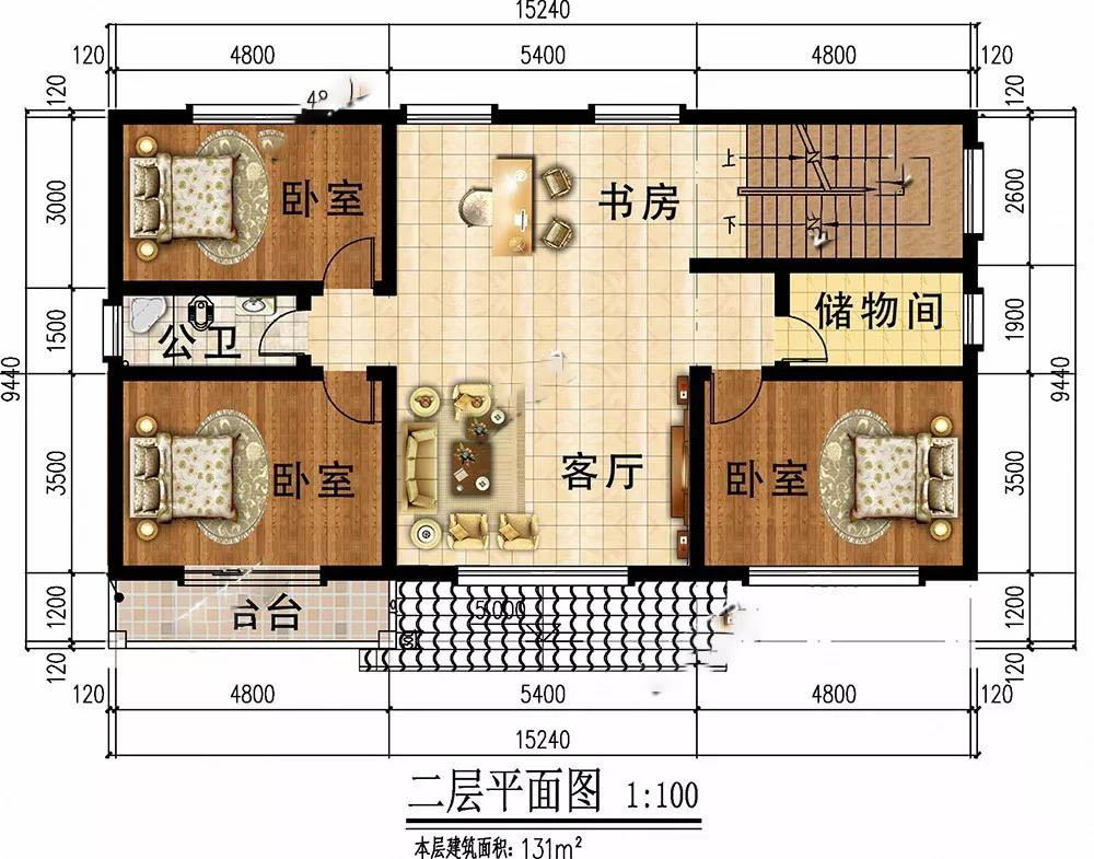 二层:3个卧室大小适中,满足家人起居;客厅书房开放式分布,宽敞明亮,开放式休闲时看看书,使家里充满书香气息。