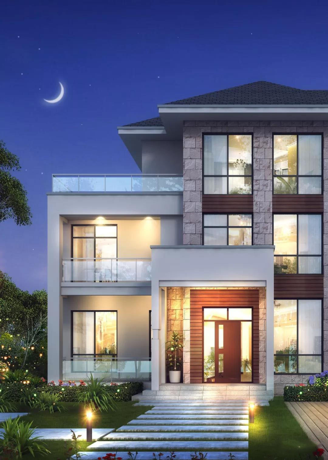 这栋别墅外观大气恢弘,带着一种令人肃然起敬的感觉。生而为人必须懂得敬畏,所以让我们一起来看看这款大气经典的三层别墅房吧。