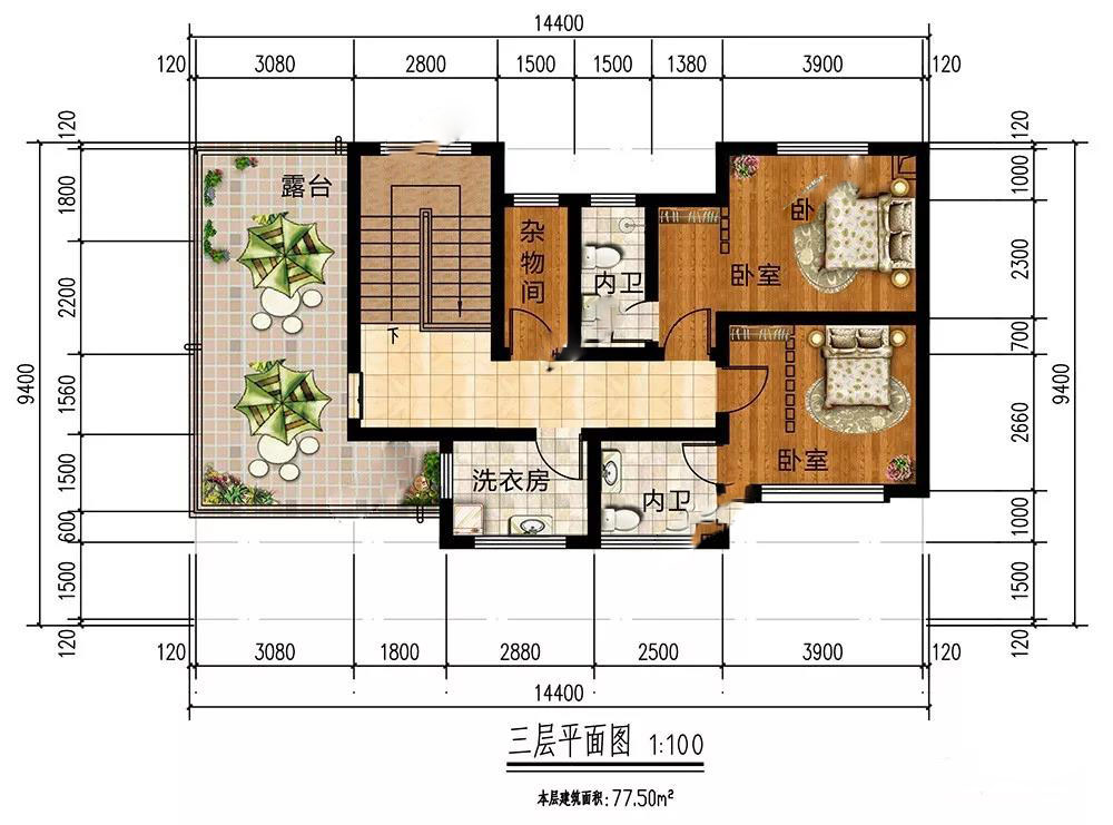 三层:两间卧室,杂物间,洗衣房还有面积较为宽敞的露天阳台,再稍加装饰就实在是太美了