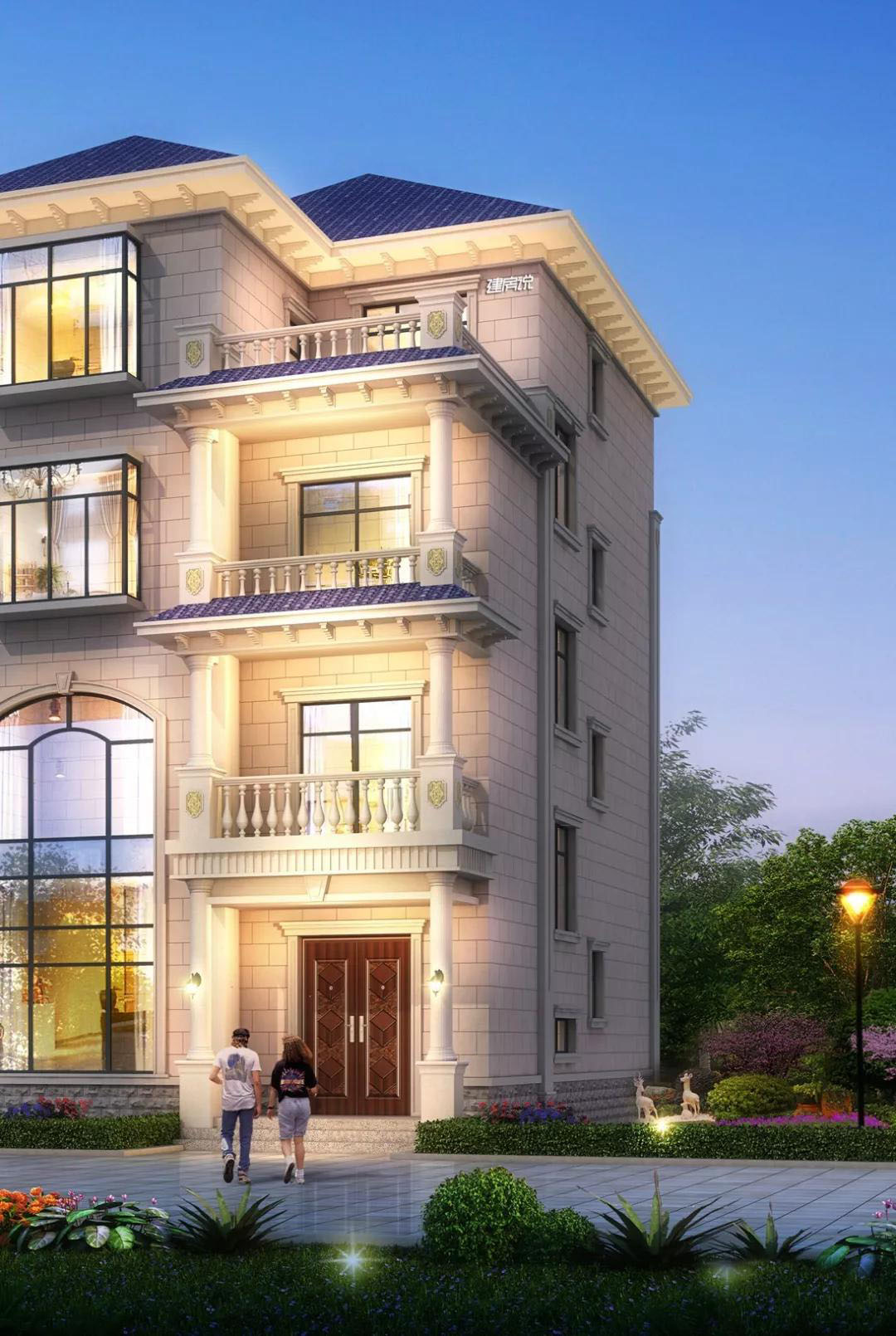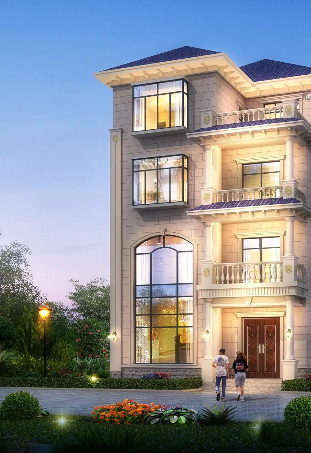 小宅基建好别墅,今天小编推荐一款开间九米的小宅基别墅,谁说小宅基建不了好别墅的!来,给大家详细介绍这款别墅的特点:别墅的屋顶是蓝色西班牙装饰,米黄色真石漆外墙做了线条处理,外加霸气的罗马柱,小宅基地也能把房子建得高大