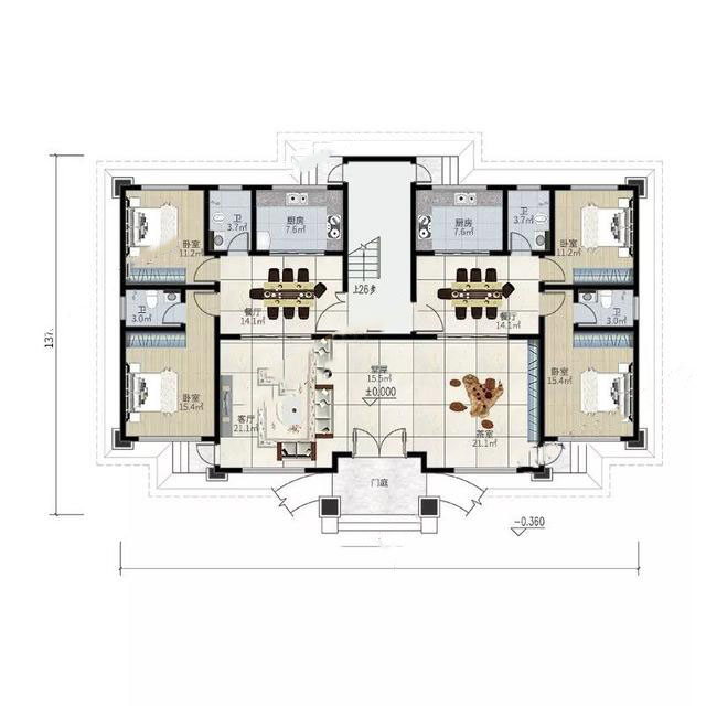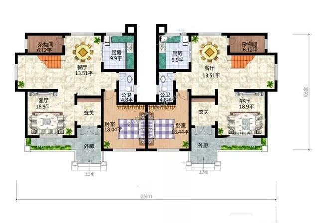独门进出的兄弟双拼别墅,外观非常时尚,在农村认可度较高。户型也还好,比较紧凑实用,空间利用率高。比较不满意的是,主卧室都只隔着一面墙,要是隔音做不好的话,兄弟俩一大家子住在一起,会比较尴尬。
