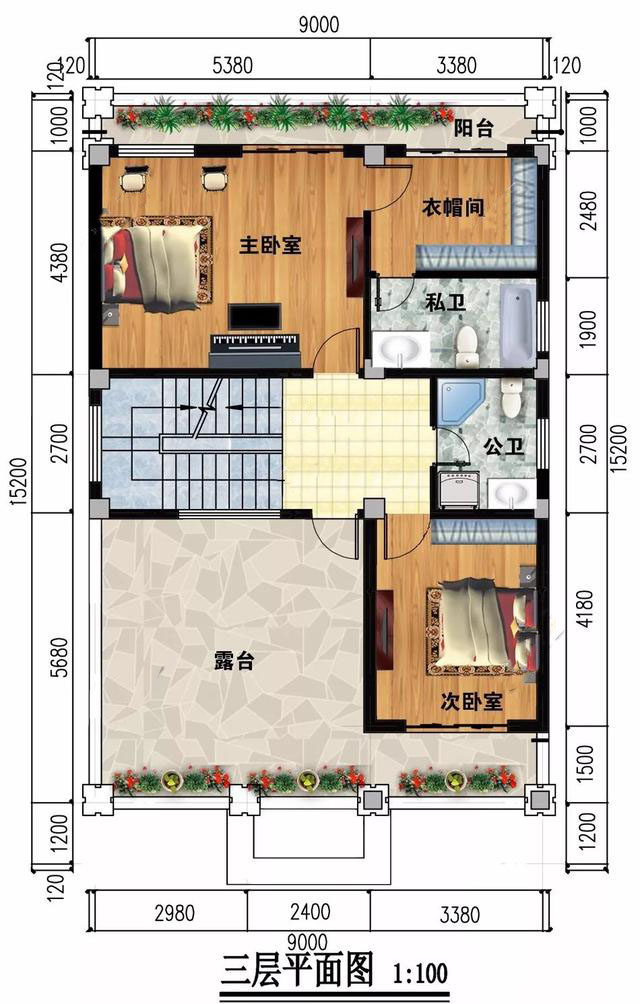 9×14.2米,三开间设计大门居中,外墙面用浅黄色真石漆装饰,配一扇大窗,整栋建筑给人感觉既有欧式的大气,又有现代式别墅的时尚感。