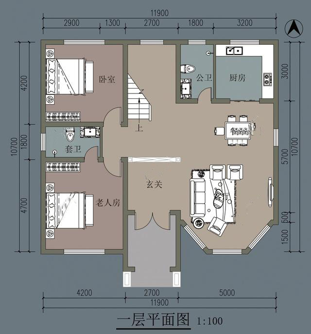房子西侧为居住空间,设有双卧室,其中老人房带独立,提升家中老人的生活质量。