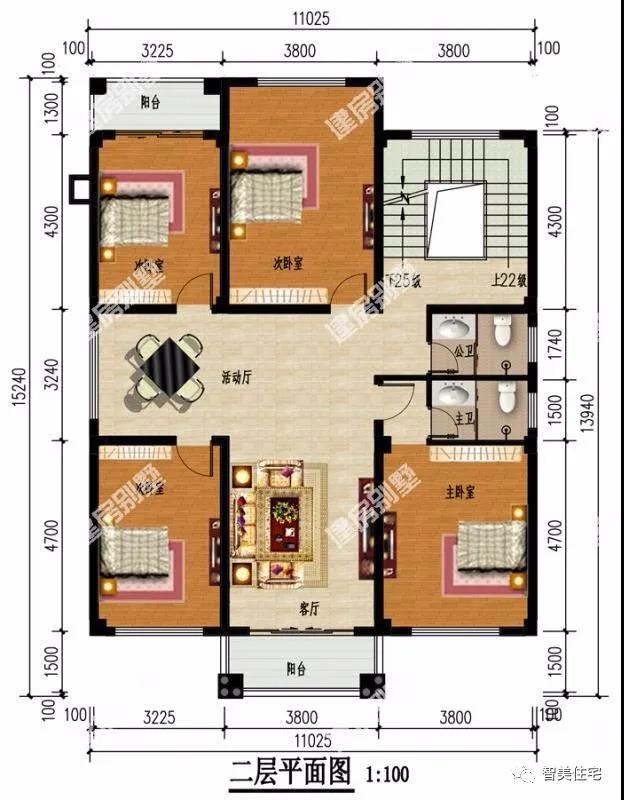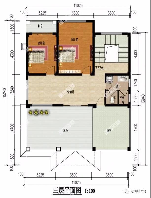 基本信息: 11.02513.94米,别墅的外壁面用茶色的小面砖、黄色的小面砖和大老板部件等装饰,屋顶用红色的釉质瓷砖装饰。
