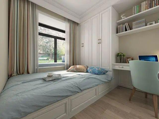 榻榻米、衣柜和书桌连在一起,一个小房间可以满足如此多的功能需求。