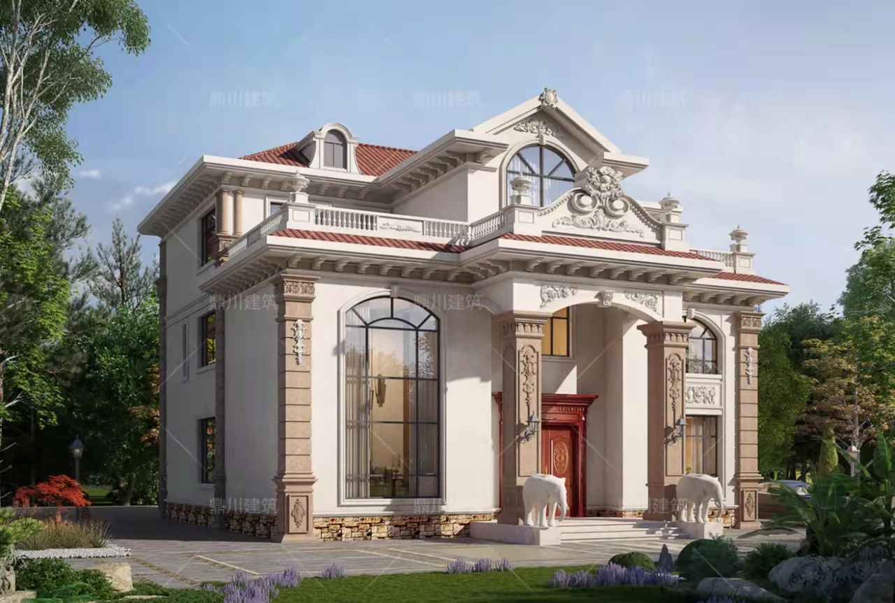 浅色外墙搭配红色坡屋顶,油然而生一种庄重体面之感。立面造型更加连贯,设计感十足。多窗多阳台露台,充分考虑别墅的采光和通风性能。红色坡屋顶错落有致,整体稳重大气,时尚耐看,经典潮流,是建房的不二之选。