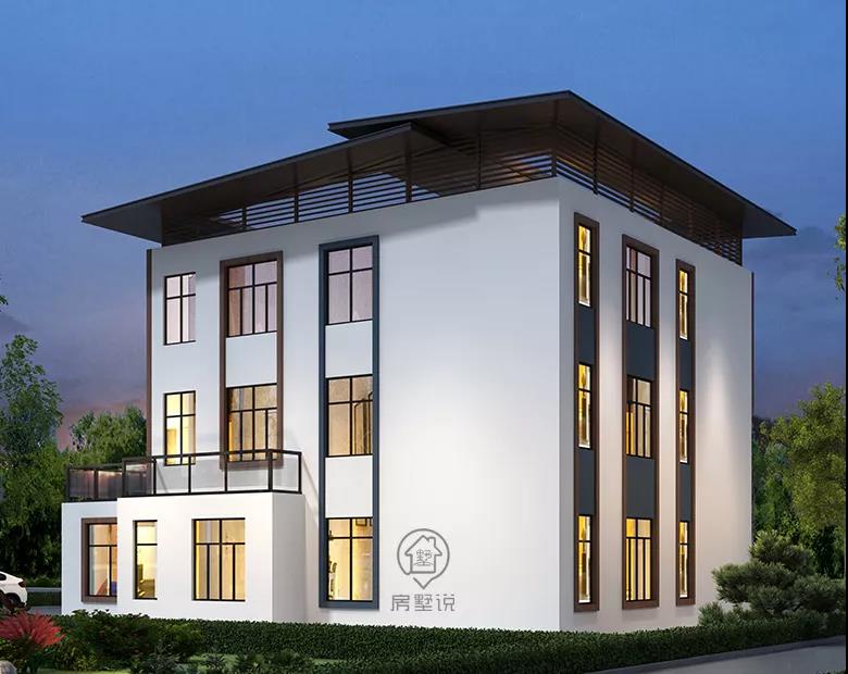 别墅的外观是十分符合一贯的现代风格设计的,深色调的粗线条装饰与白色的墙体相互呼应,黑色的细窗框与大面积的窗开,让屋内十分亮堂,屋外看去也尽显时尚,三楼的楼顶设计也十分具有特色,让人赞叹。