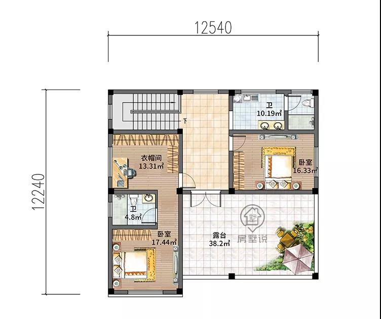 别墅三层设有两个卧室,衣帽间,两个卫生间,露台。
