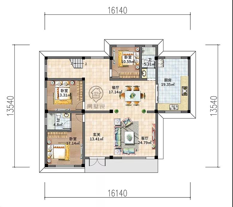 开间进深:16.14X13.54米