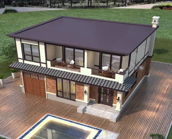现代和传统的结合是年轻人的最爱,复古也可以很潮。潮流不一定是新兴事物,也可能是复古和现代的结合,就像这款新中式="://www.lemeizhai.com/Picture.asp?PicClassID=88" target="_self">二层别墅设计,传统的外贴砖设计和淡黄的墙体融合,让这栋别墅变得更加耐看,又有点现代别墅影子。