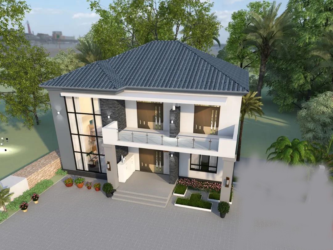 农村别墅千千万,漂亮有特色的房子却很少。如今越来越多的人在城里有房的情况下,还是会选择回乡建一栋房,下面为大家分享1款高颜值的别墅,这套现代风别墅共二层,设计旋转楼梯,5个卧室、一个书房。在平面布局上除满足基本的居住以外,要求空间布局舒适、合理。风格上屋檐设计成坡屋顶。