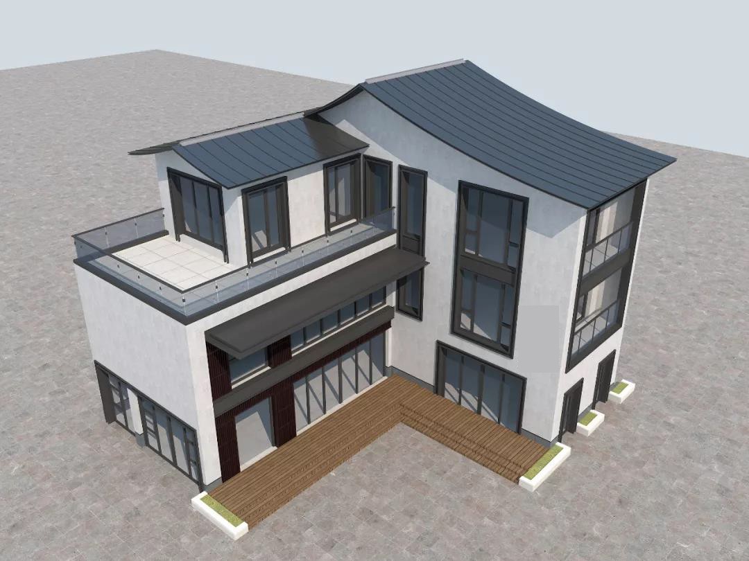 喜欢中式建筑,但又不想自家房子过于沉闷;喜欢现代风建筑,但又不想房子过于简单。那么现代风和新中式混搭,成功的把这些问题都解决了。就是今天推荐的这款="://www.lemeizhai.com/Picture.asp?PicClassID=91&page=6" target="_self">3层别墅设计,整栋别墅的配色上采用了传统的灰白色搭配,所以就有了中式的元素在里面,然而同时这又是一栋小三层,门窗均采用现代制作工艺的玻璃门窗,从里到外又给人一种超现代感觉,所以这栋别墅用新中式来称呼也是没错的。