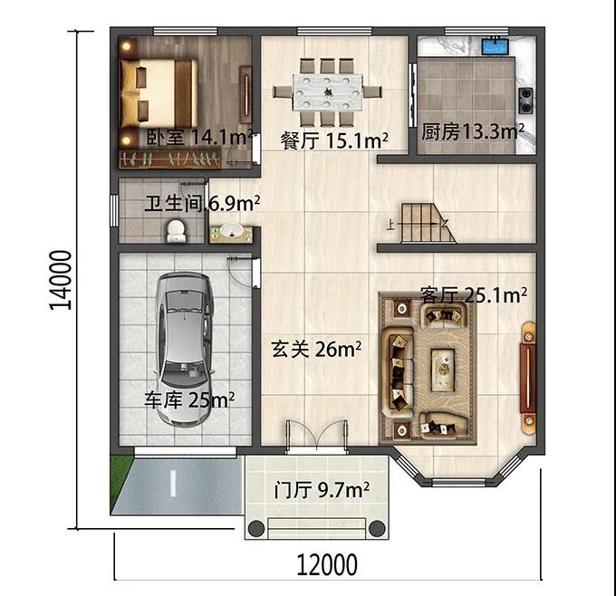 别墅一层设有门厅,玄关,客厅,餐厅,厨房,卧室,卫生间,车库。