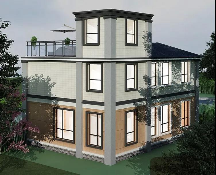 现在农村盖房,90后逐渐成为了主力军,大家对于房子的要求也逐渐有了更深的理解。要漂亮要有型,最好是现代风格,就比如这款二层现代="://www.lemeizhai.com/" target="_self">别墅设计,一大一小一浅一靓,简约有型,全方位大幅度开窗,黑色窗框线条时尚潮流又大气简约,十分耐看!