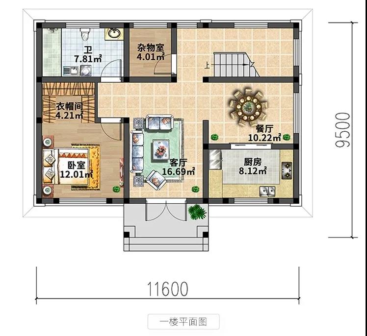 别墅一层设有客厅,餐厅,厨房,卧室,衣帽间,卫生间,杂物间。