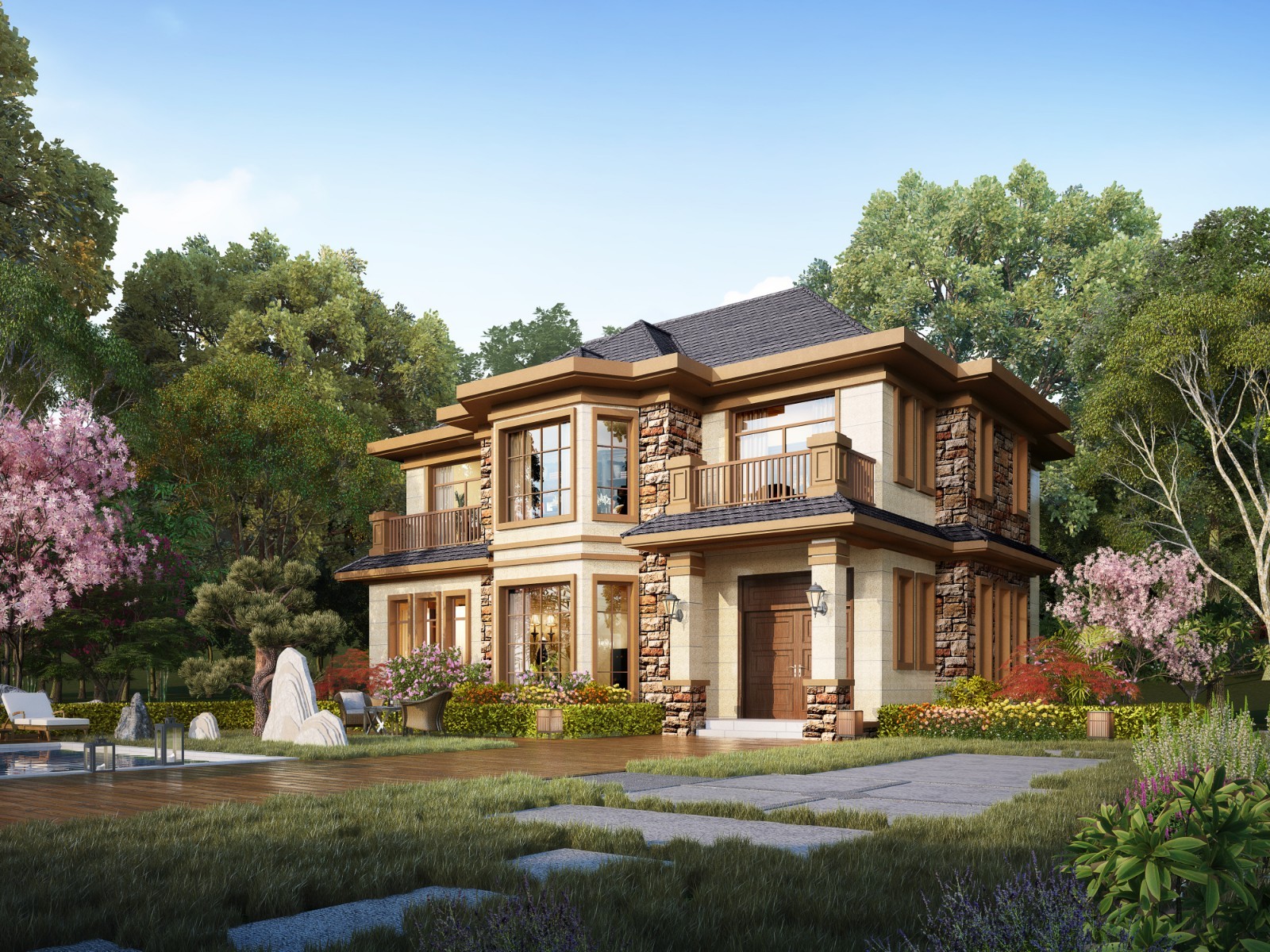 外观简约,占地方正的="://www.lemeizhai.com/Picture.asp?PicClassID=88" target="_self" style="font-size: 24px; text-decoration: underline;">二层别墅设计,可以说是最受农村建房朋友喜欢的户型。农村建房一定不能将就,毕竟是花了自己多年的积蓄,要建就要盖一栋全家都满意的房子。利用柔和色调打造外观,更显家的温馨,对称设计符合农村一贯追求的建房美学,再搭配落地窗与观景阳台,这样的户型,人见人爱