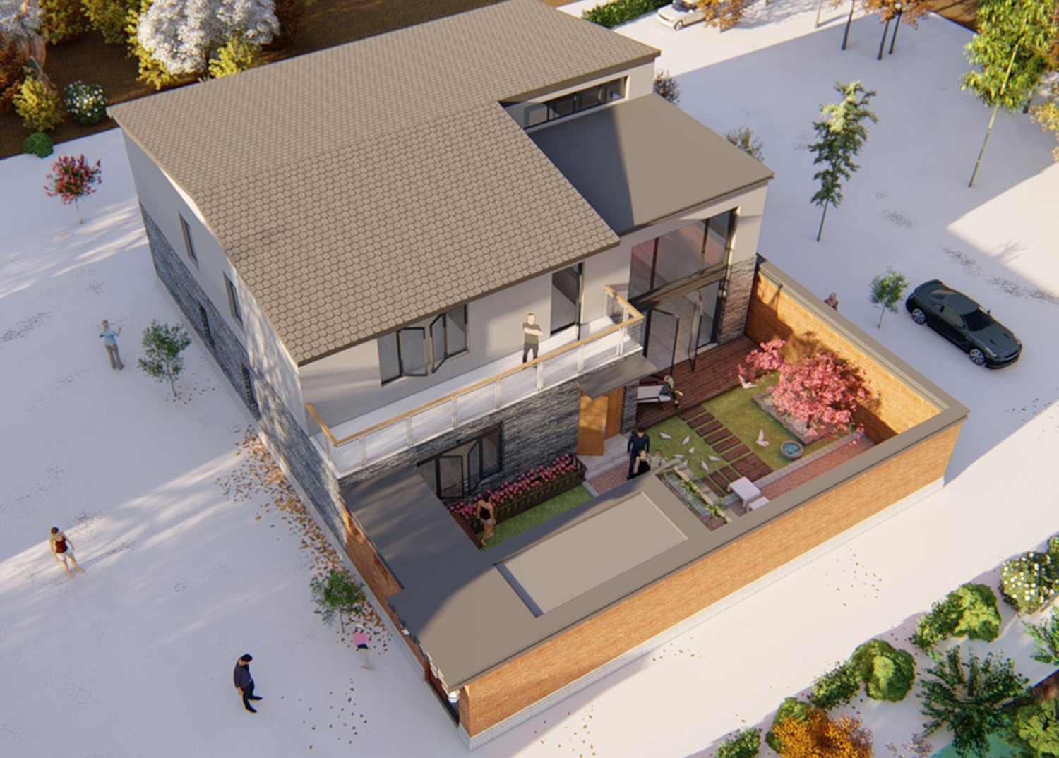 一般的宅基地大小都差不多,建一栋280㎡的别墅完全没有问题。家住湖北的鲁总是一个热爱生活的人,找到我们想要建一栋="://www.lemeizhai.com/Picture.asp?PicClassID=88" target="_self" style="font-size: 24px; text-decoration: underline;">二层小别墅,这栋小别墅是给父母居住的。接到鲁总的订单,我们的设计师刘工是这样设计的,采用红砖做半包围式的庭院侧边开门,别墅是现代风格,墙体是文化石和真石漆装饰,设计有两扇门,别墅右侧留有搭建阳光房的空间。这款别墅造价最高预估40万,喜欢的收藏。