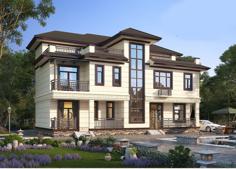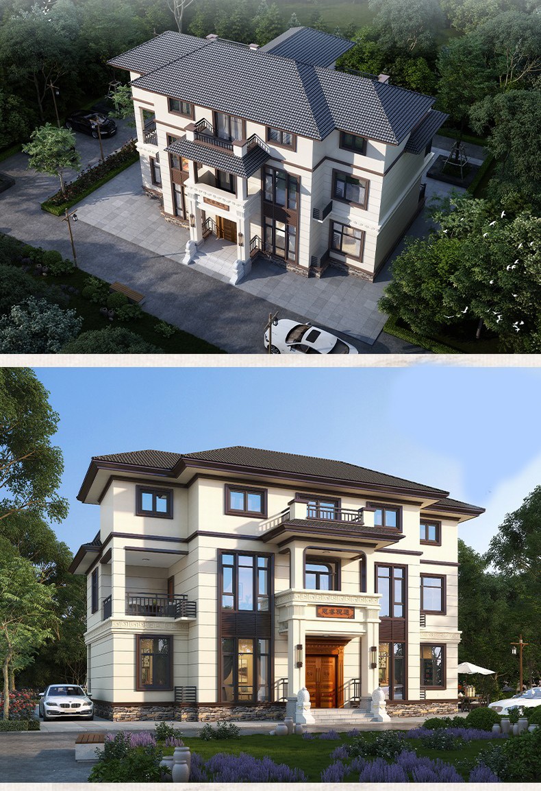 今天推荐的是="://www.lemeizhai.com/search.asp?SearchType=Software&imageField.x=24&imageField.y=40&SearchKey=%B6%FE%B2%E3%B0%EB" target="_self">二层半别墅设计,这款新中式农村二层半大气漂亮,顶部有露台和阁楼随不是三层但也大差不差。这款别墅配色简单,就褐色,米黄色和一点线条与文化石搭配,别墅前后各有特点,前面大气好看,后面层次感十足。