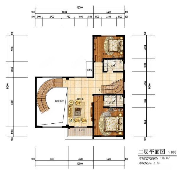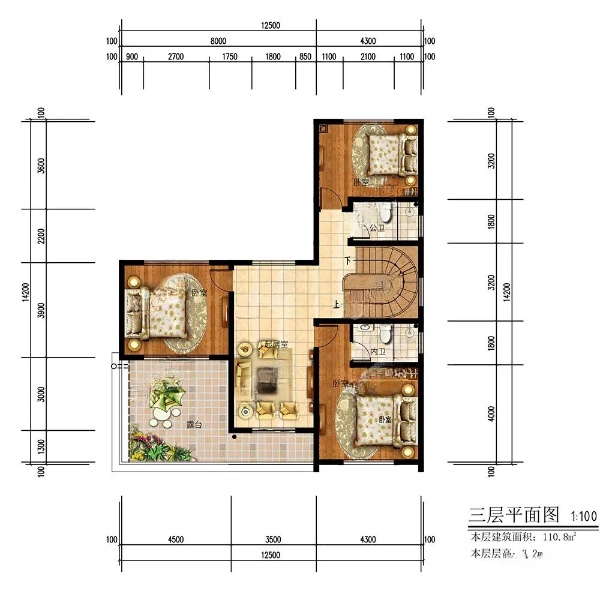 别墅三层设计全景图: