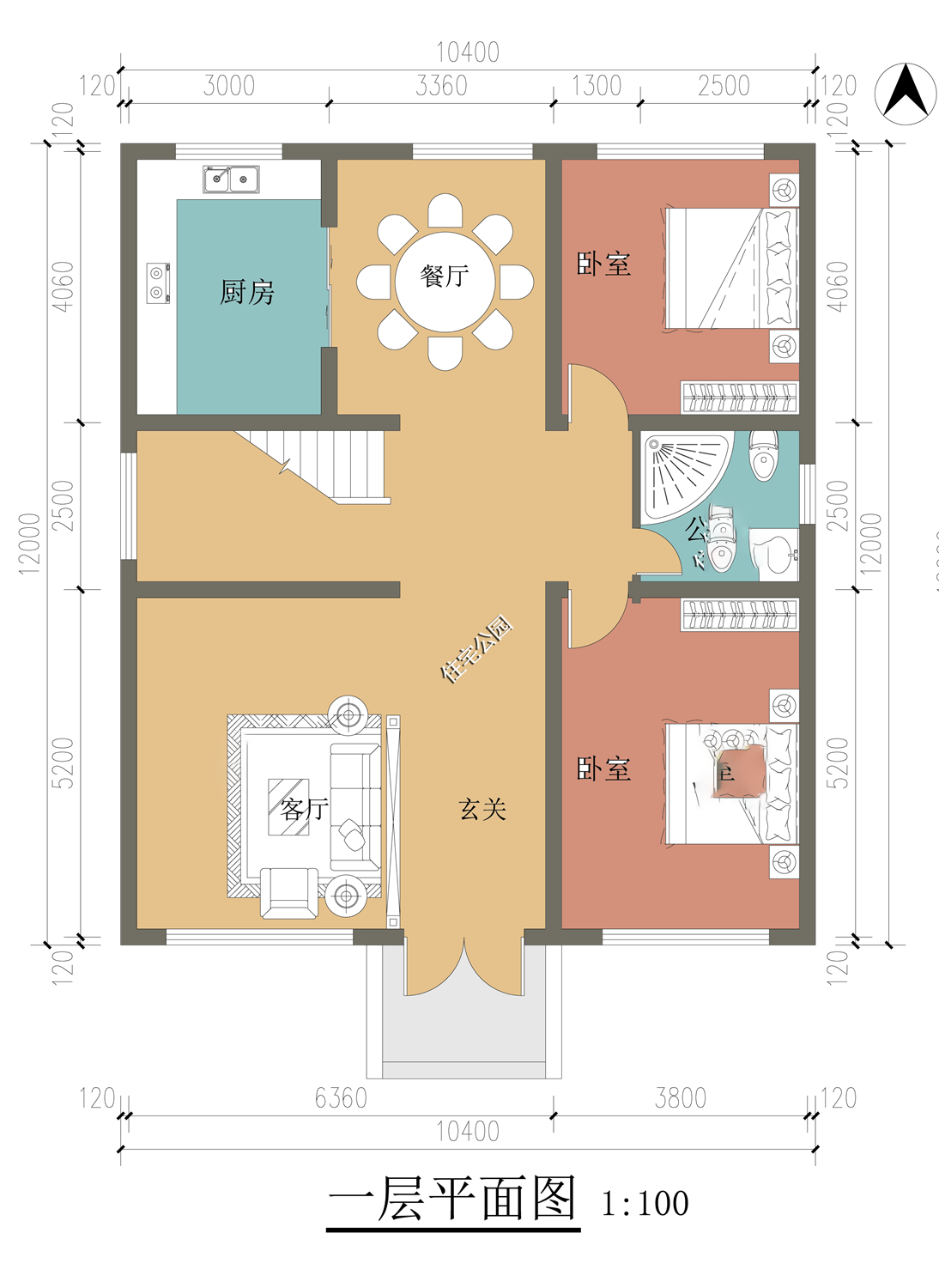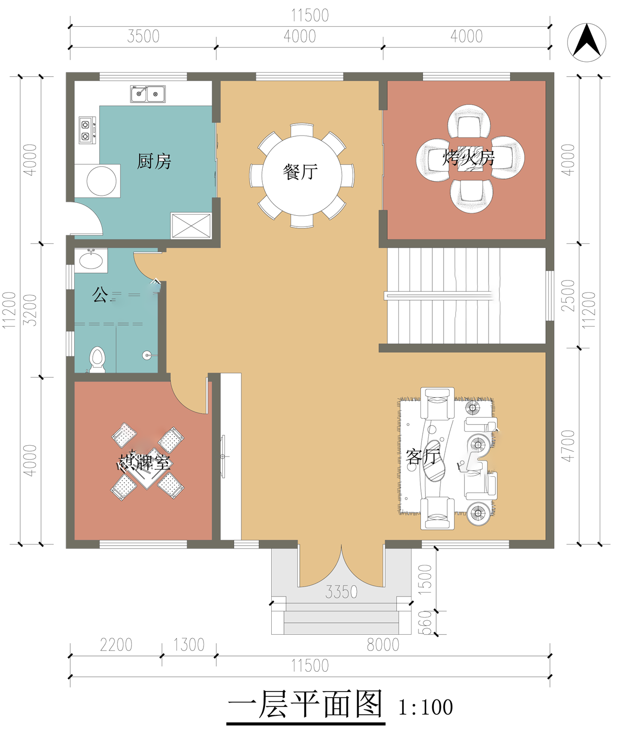 一层设置了棋牌室和烤火房,过年过节时一大家人在此休闲娱乐、喝茶聊天,其乐融融,整个房间充满欢声笑语,一层没有设置卧室也不会打扰到需要休息的家人。