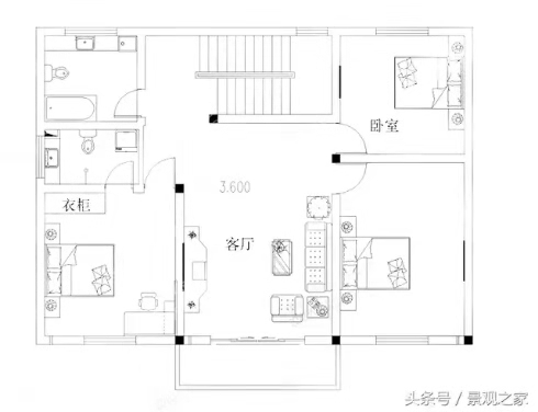 二层:3间卧室 客厅、2个卫生间。