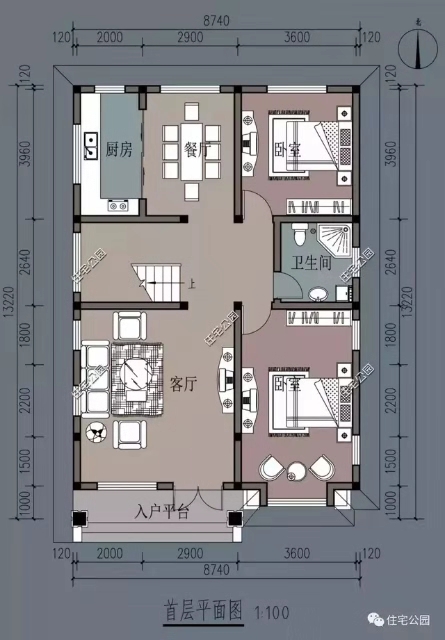 1.别墅定义与小户型设计,虽然说小,但是布局可一点都不狭窄,首层空间共设计了两间卧室作为休息的场所,而其它的功能用房则完全规制在了西边;客厅与餐厅设计在了一起,很是通透!也非常宽敞。