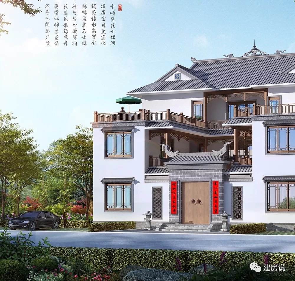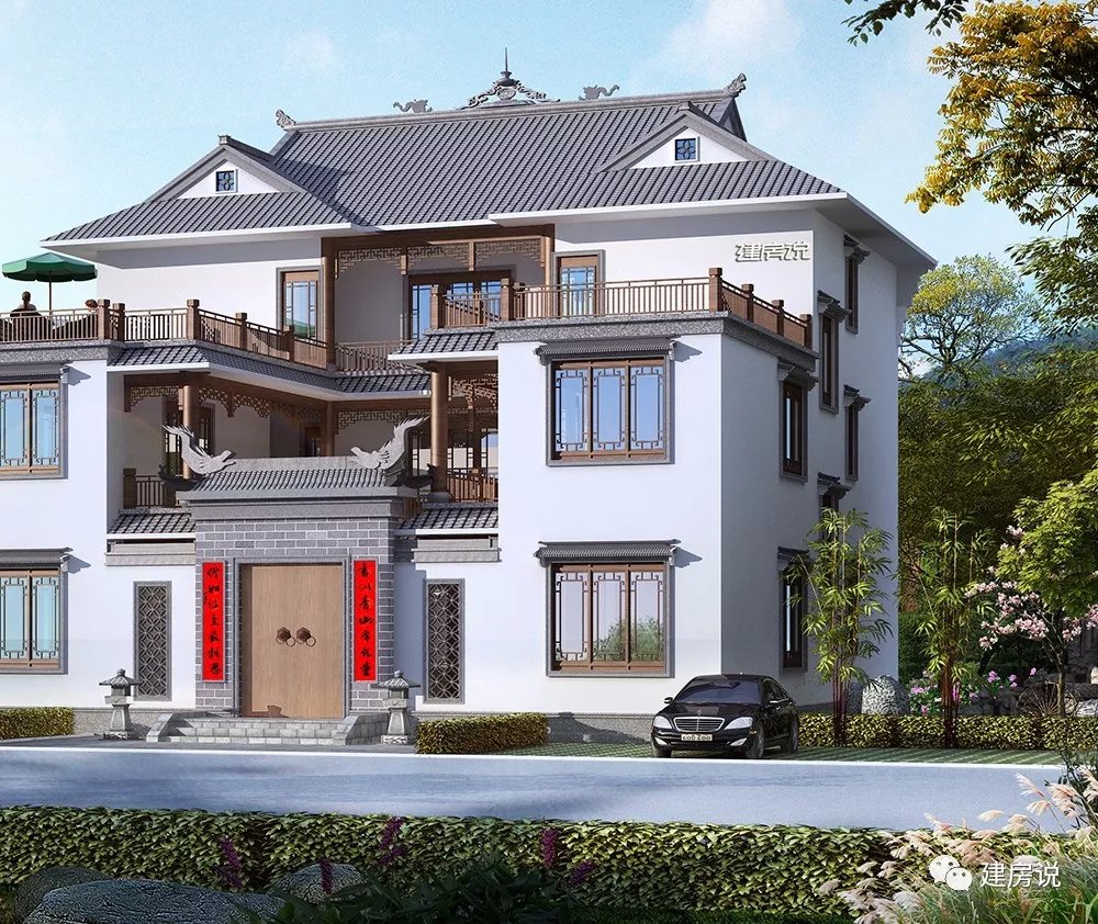今天介绍的这款充满江南气息的三层中式别墅,白墙灰瓦,精致典雅,有此一宅,光耀门楣。、