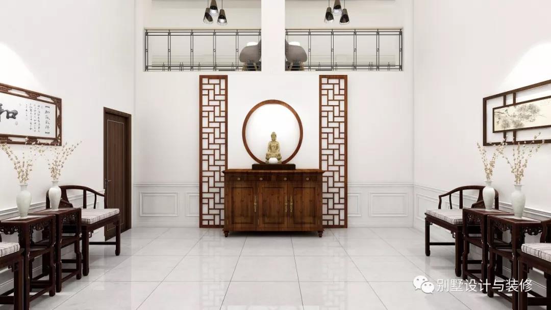 一层堂屋:堂屋布置实木家具,中间摆放神龛,符合农村人民的居住习惯。