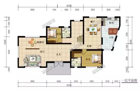 别墅外观采用瓷砖和真石漆二段式分层装饰,门廊出入户设计的更为宽敞,廊柱处精致的细节装饰更是十分用心。内部带挑高客厅和土灶,还有怡然的舒适小庭院。