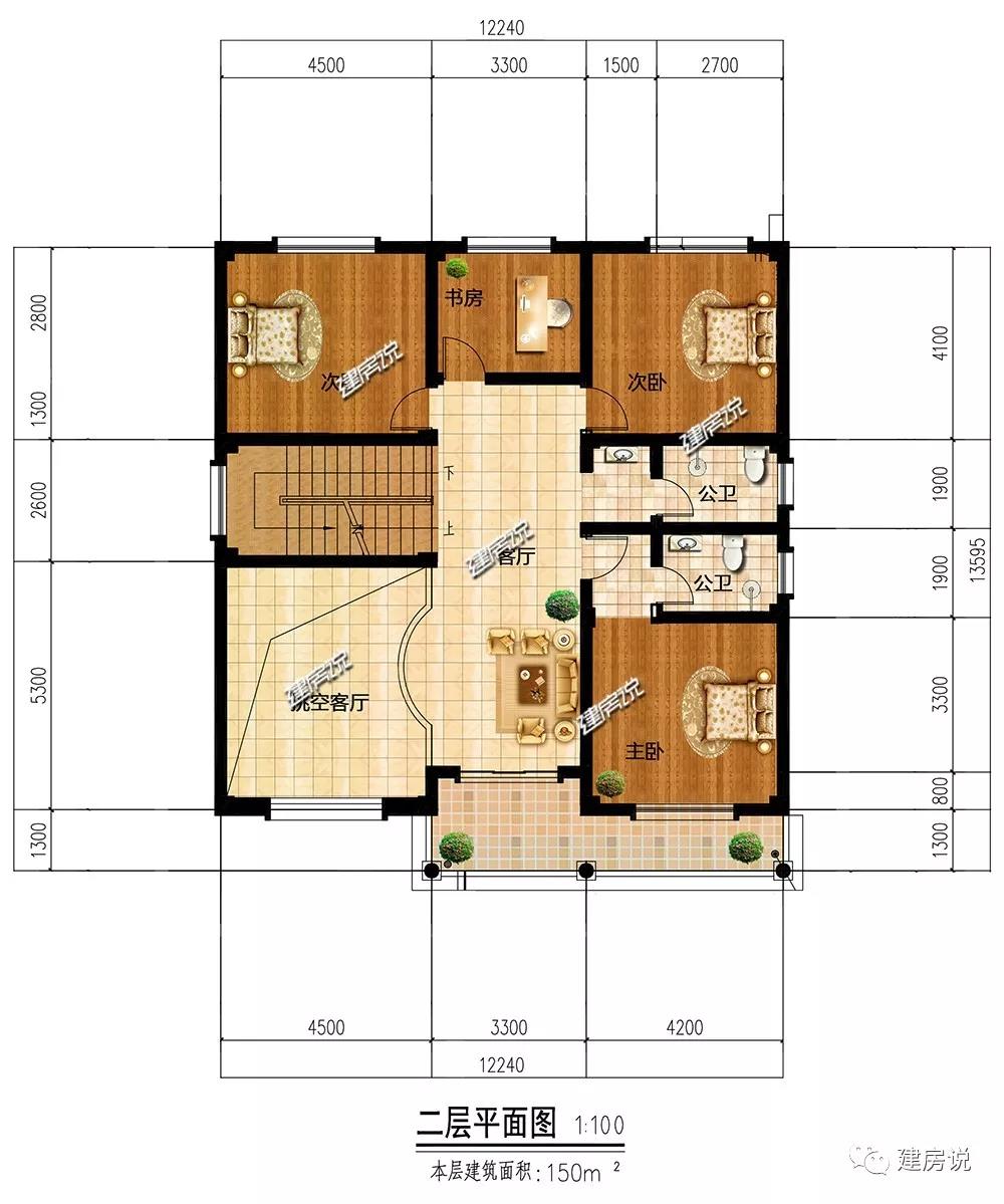 5、开间12.295米,进深13.595米