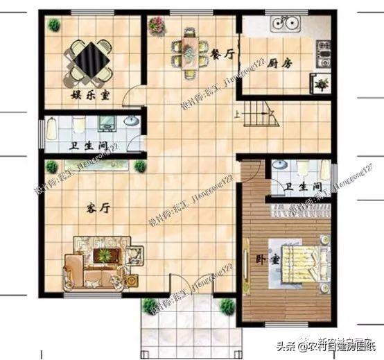 布局设计:一共设计7间卧室,可以容纳7——14口人居住,哪怕是三代同堂,或者是家里逢年过节招待客人,都有宽敞的空间。