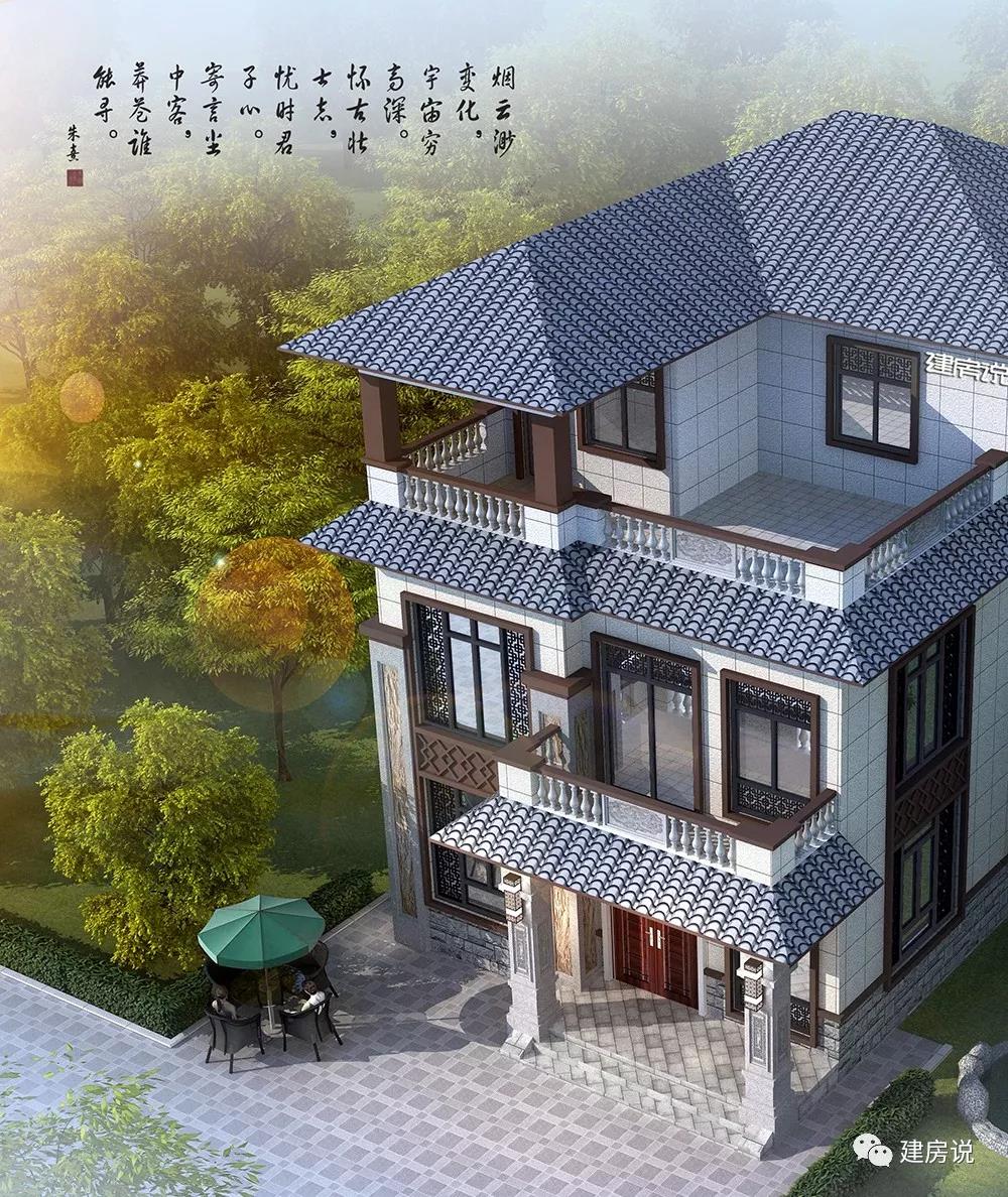 三层新中式别墅,面宽仅9米,照样把新中式别墅建得如此精致。别墅外墙主体以浅灰色真石漆装饰,屋顶是灰色琉璃瓦,整体配色庄重沉稳,这让别墅更加有韵味。